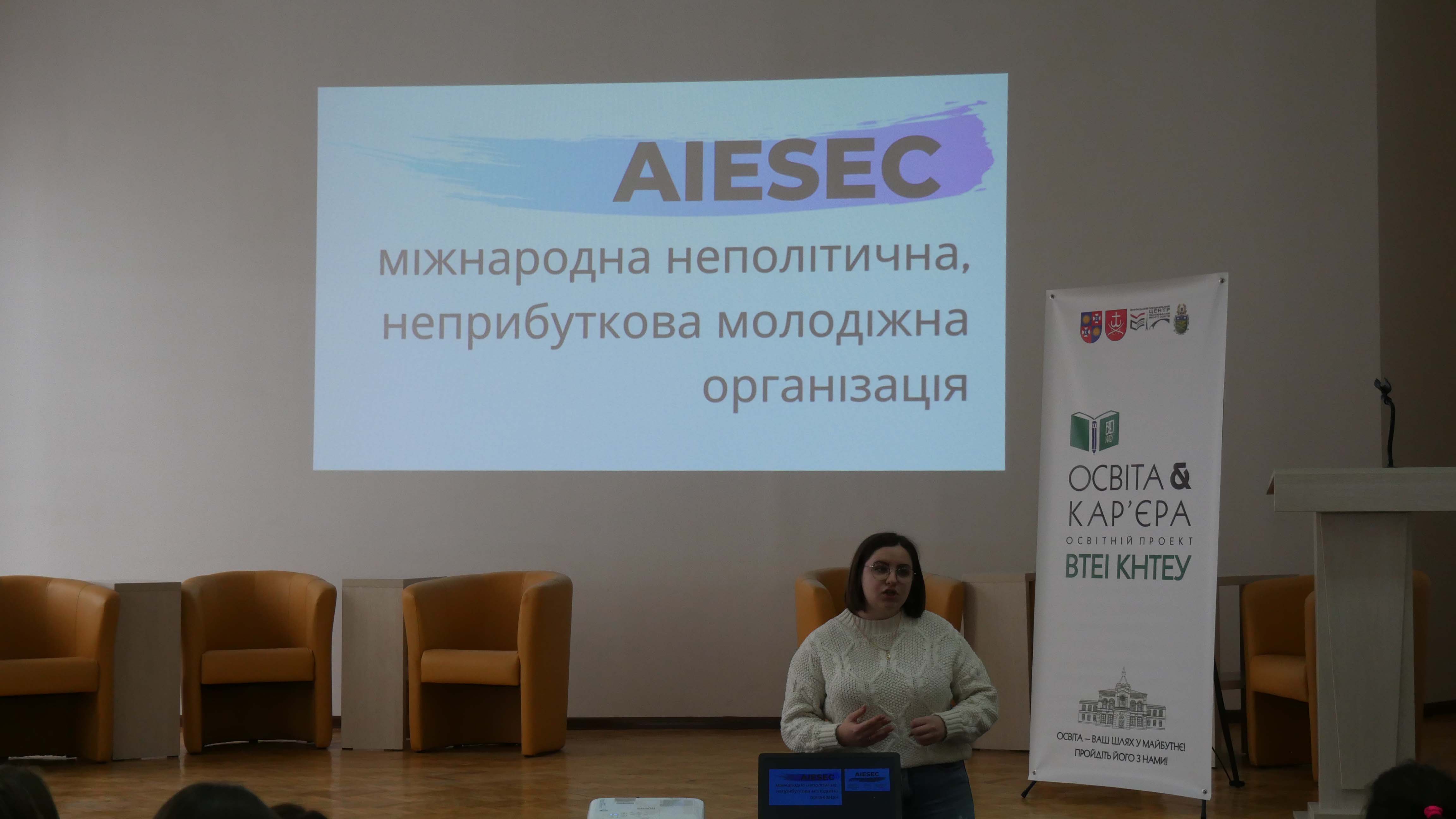 Представники AIESEC ознайомили студентів з можливістю стати учасниками програми і поїхати за кордон, або ж самостійно організовувати стажування за кордоном для інших студентів. Це дозволить набути практичні навички в роботі з організації поїздок; покращити рівень англійської мови; знайти нових друзів.
