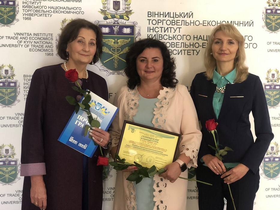 За сумлінну, творчу працю, особистий внесок у справу навчання і виховання підростаючого покоління кандидата економічних наук, доцента кафедри обліку та оподаткування Яковишину Надію Андріївну відзначено Почесною грамотою Департаменту освіти та науки Вінницької ОДА.