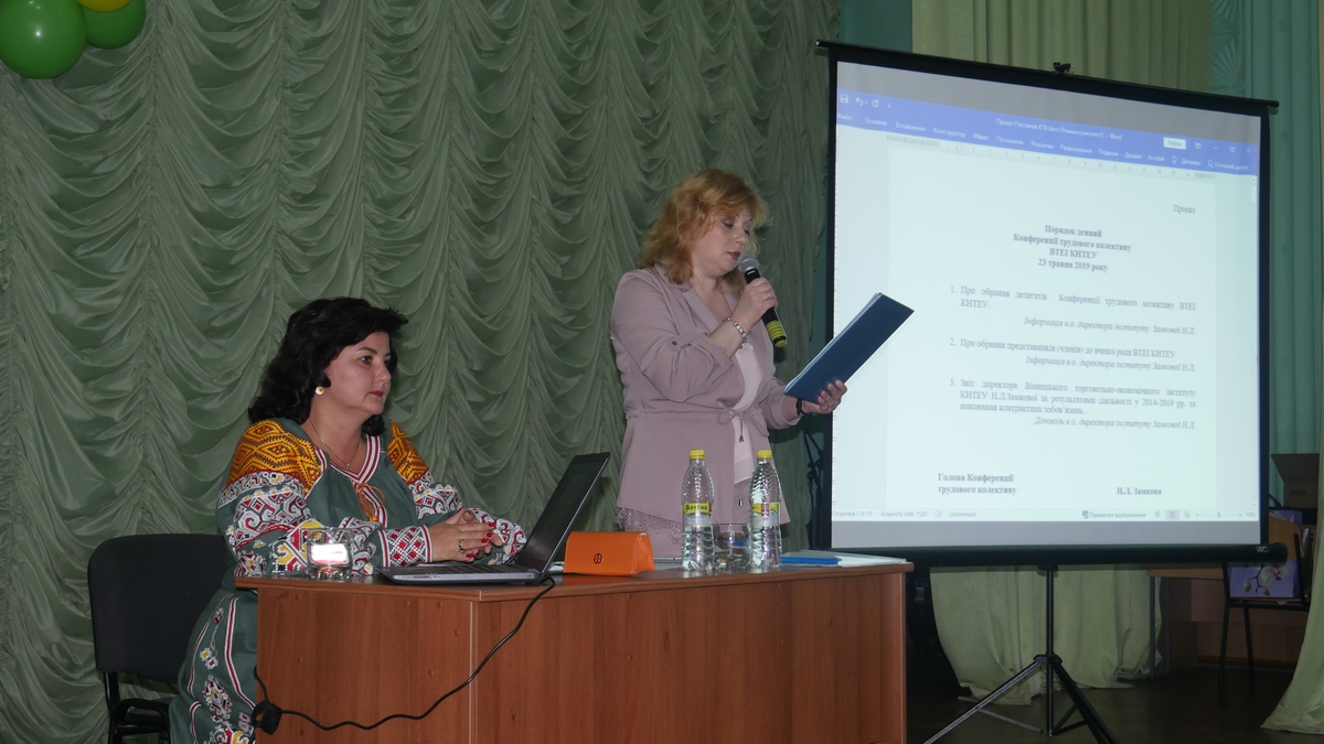 23 травня 2019 року відбулася конференція трудового колективу ВТЕІ КНТЕУ, на якій були ухвалені відповідні рішення згідно наступних питань порядку денного.