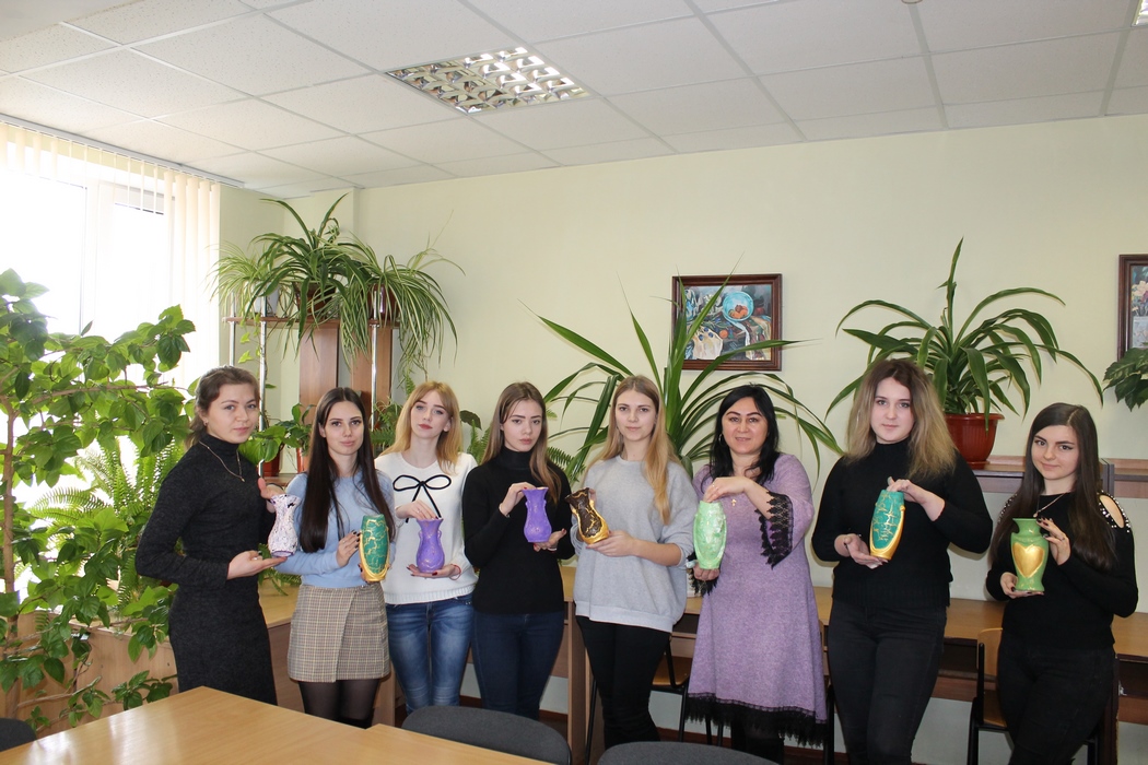 01 березня 2019 року, в рамках святкування тижня факультету економіки, менеджменту та права, майстринею-художницею Галиною Кривуш було проведено майстер-клас по художньому оформленню скла та кераміки в техніці кракелюр.