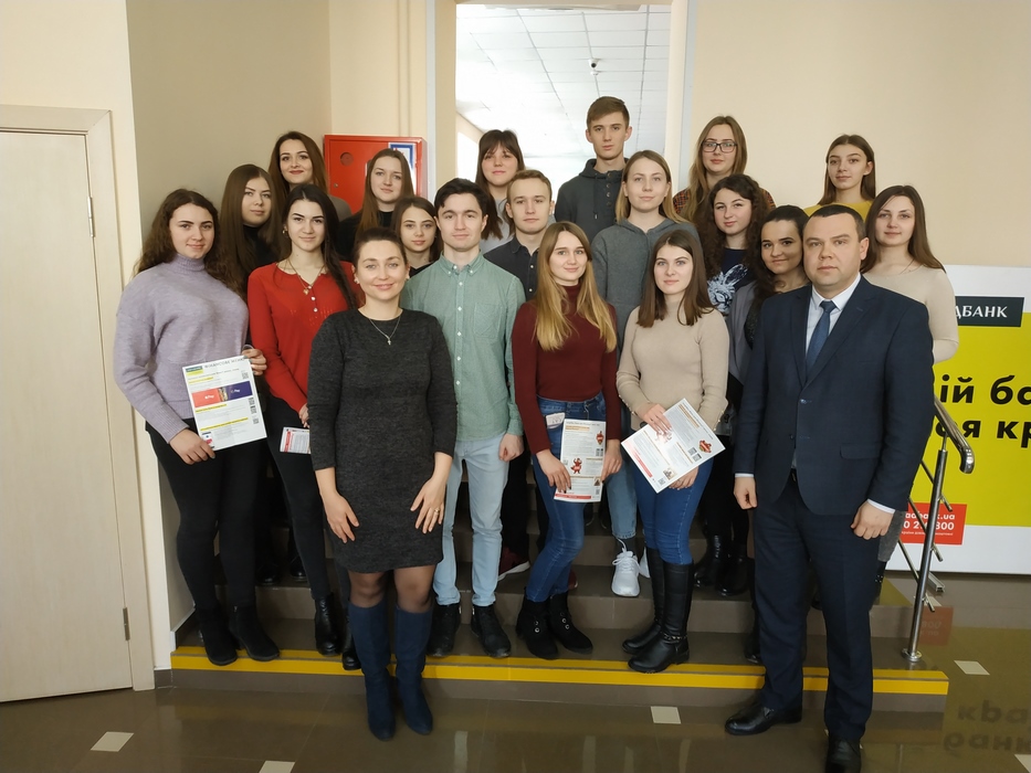 Здобувачі освітнього ступеня «бакалавр» спеціальності «Фінанси, банківська справа та страхування» мали змогу відвідати відділи обслуговування юридичних та фізичних осіб, віп-клієнтів, оцінити можливості депозитарної функції банку та інклюзивного обслуговування. Отримали практичні поради розрахунку реальної ставки за депозитами та кредитами.