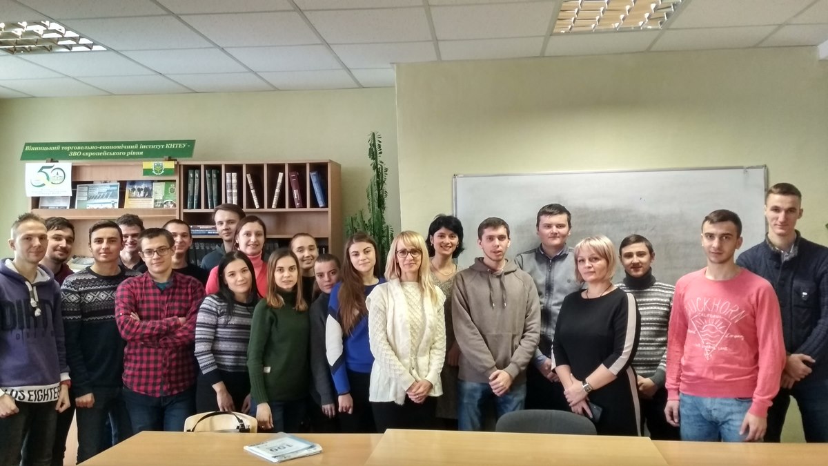 20 грудня 2018 року кафедрою економічної кібернетики та інформаційних систем ВТЕІ КНТЕУ було організовано лекцію на тему «Державне регулювання щодо умов ведення бізнесу», яку прочитала завідувач Сектору Державної регуляторної служби у Вінницькій області Данілова Олеся Вікторівна для здобувачів вищої освіти спеціальності «Економічна кібернетика».