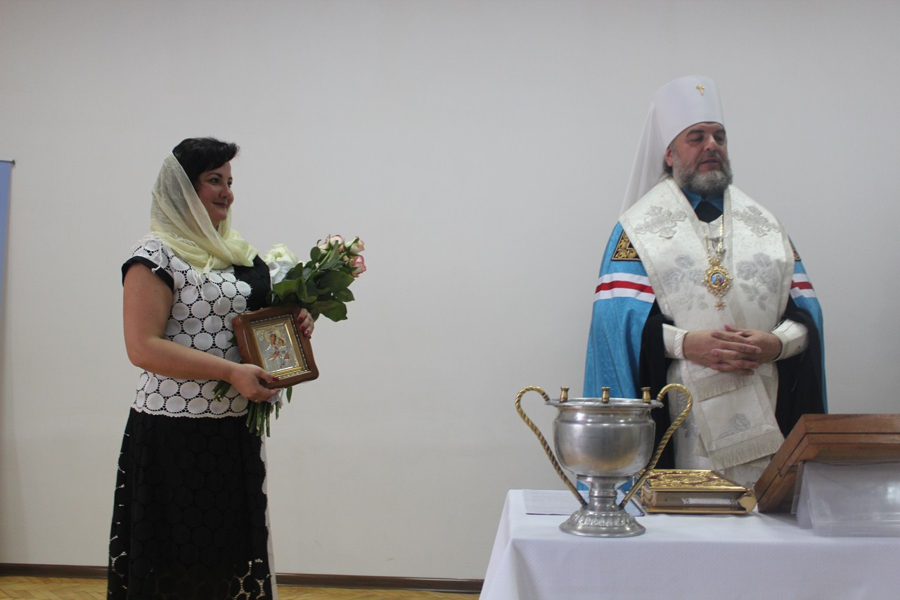 Наприкінці урочистого заходу владика Симеон привітав директора інституту Замкову Наталію Леонідівну з присвоєнням почесного звання «Берегиня України», і благословив іконою Пресвятої Богородиці.