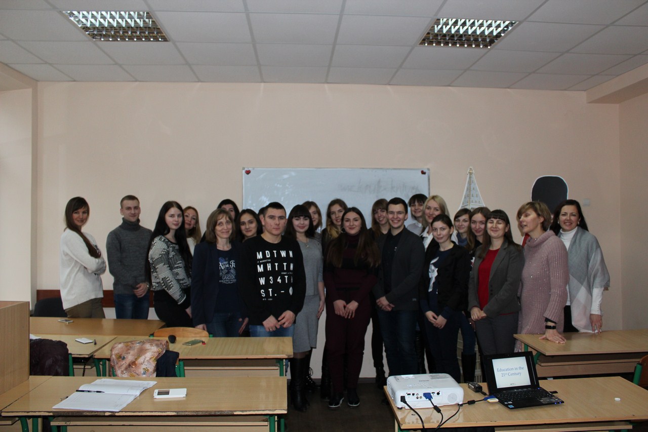 Якою повинна бути освіта 21 століття? Як і чому слід учити сучасних студентів, щоб вони були успішними? Саме ці актуальні як для студентів, так і для викладачів питання були ключовим під час проведення інтерактивного англомовного майстер-класу «Education in the 21st century», організованого кафедрою іноземної філології та перекладу 29 листопада 2017 року в рамках тижня обліково-фінансового факультету.