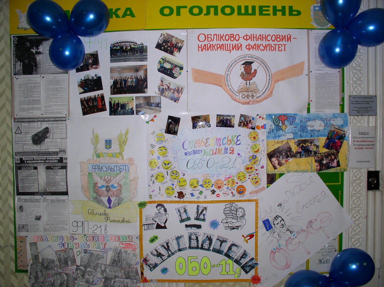 29 листопада 2017 року на обліково-фінансовому розпочався Тиждень факультету. Зокрема, у холі четвертого корпусу, починаючи з великої перерви, усі охочі могли долучитися до флеш-мобу «Залиши свій відбиток на родинному дереві ОФФ», зробити селфі у фотозоні «Барви осені на ОФФ» з хештегами своїх професій, познайомитись з виставкою студентських стінгазет та знайти прикольні фото своєї групи і не тільки на фотосушці «Веселі сторінки студентського життя».