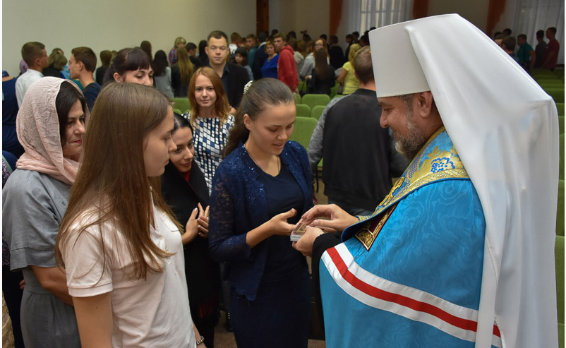 Після вітального слова митрополит Симеон з духовенством відправив молебень, у якому звучали молитви за Україну, її народ, владу і військо, а також за викладачів і студентів інституту. Після многоліття, яке виголосив диякон, священик окропив присутніх святою водою.