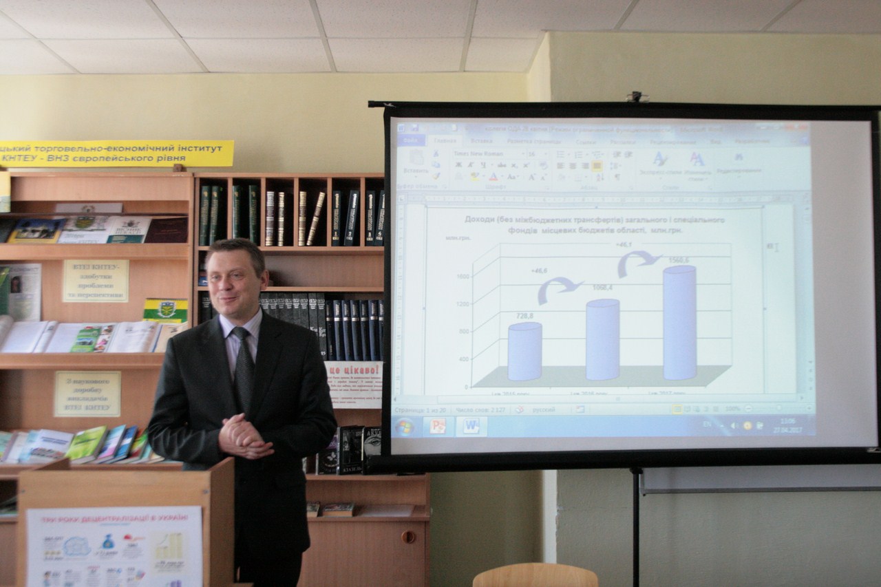 27 квітня 2017 року кафедрою фінансів було організовано міжвузівський круглий стіл на тему: «Бюджетна система України в умовах децентралізації», учасниками якого були представники Департаменту фінансів Вінницької обласної адміністрації та Вінницького національного аграрного університету. На заході були присутні декан обліково-фінансово факультету Бондаренко В.М., викладачі кафедри фінансів та здобувачі вищої освіти спеціальності «Фінанси і кредит».