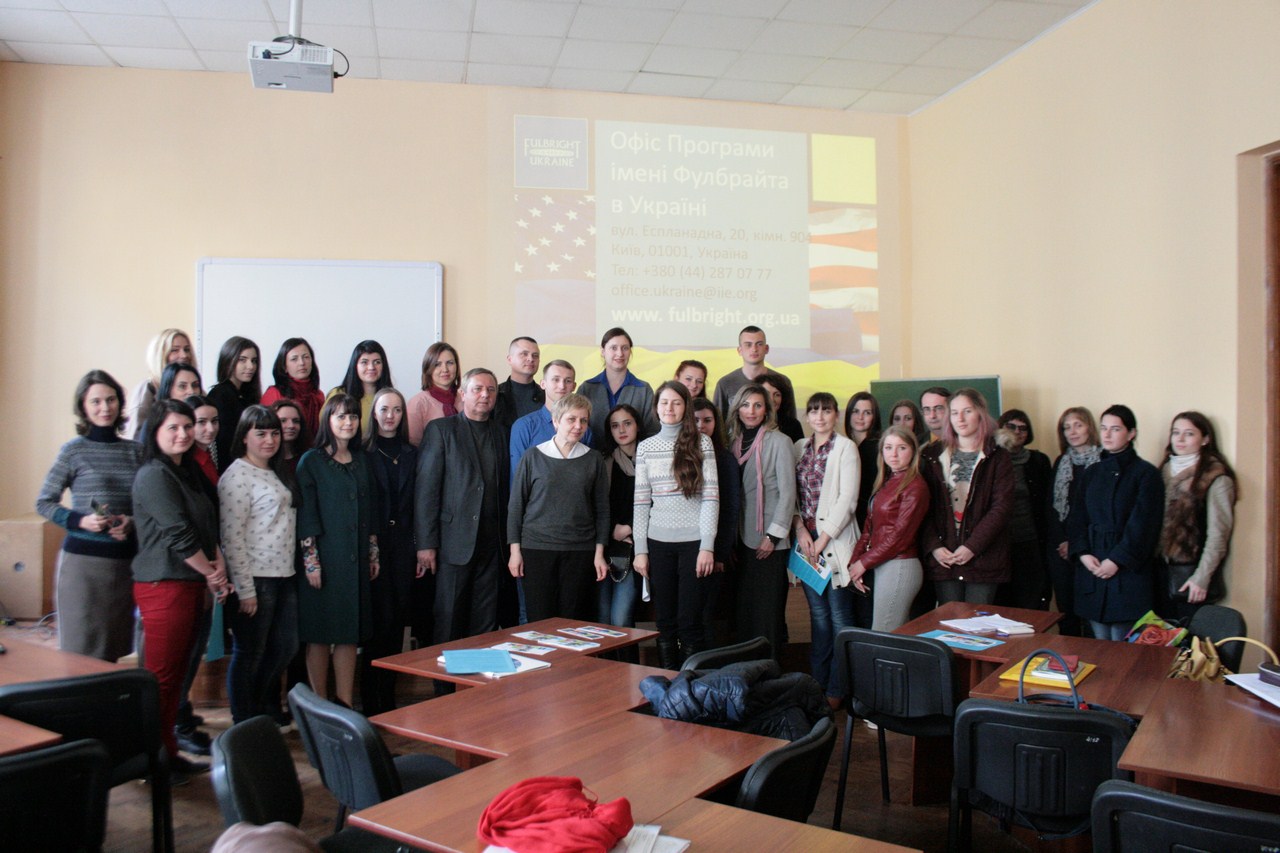 Пані Інна Бариш деталізувала основні вимоги щодо участі в стипендіальних програмах. До дискусії долучилися викладачі інституту, які свого часу були учасниками програми академічних обмінів. Доцент кафедри іноземної філології та перекладу С.Д. Чугу протягом чотирьох місяців здійснювала своє наукове досліження в США. Доцент кафедри економіки та міжнародних відносин Недбалюк О.П. виконував науковий проект «Методика розробки програм територіального розвитку (досвід США для України). Вони поділилася особистими враженнями від перебування в Америці та підтримали думку про перспективність і реальність отримання стипендії імені Фулбрайта в умовах сьогоденної орієнтації країни до міжнародної освіти.