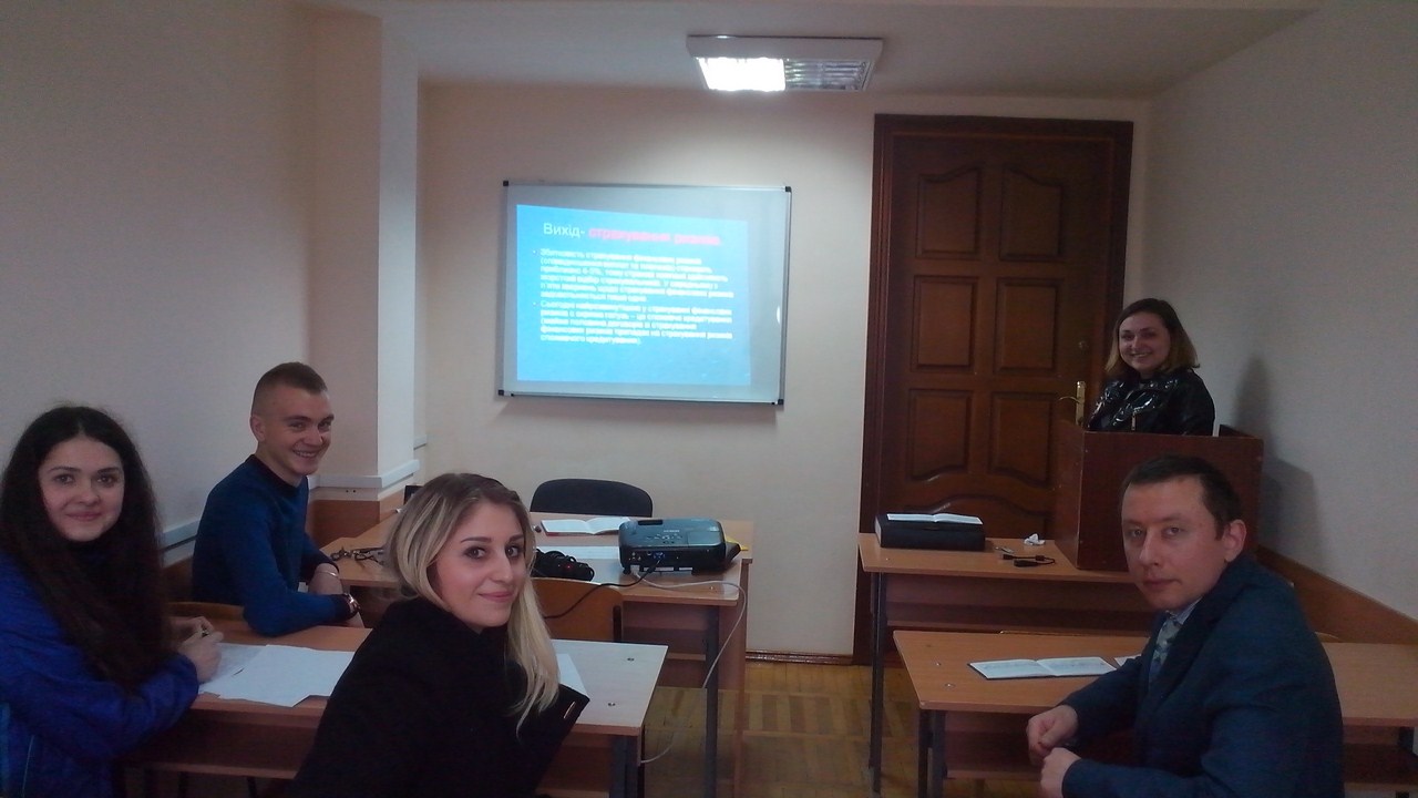 7 квітня 2017 року відбулося планове засідання дискусійного клубу «Актуальні проблеми та перспективи розвитку фінансової системи України». Засідання відкрила керівник дискусійного клубу к.е.н., доцент кафедри фінансів Демченко Оксана Петрівна. Тема засідання: «Фінансові ризики сучасної України та методи управління ними» викликала науковий інтерес. З цікавими доповідями і презентаціями виступили члени дискусійного клубу – здобувачі освітнього ступеня «магістр» спеціальності «Фінанси, банківська справа та страхування» групи ФП-11з(м), а також запрошені здобувачі освітнього ступеня «бакалавр» спеціальності «Фінанси і кредит» групи ФП-31д(м).
