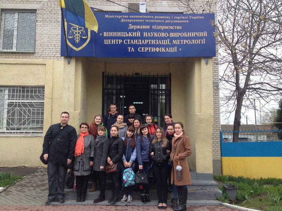 7 квітня 2017 року в рамках вивчення дисципліни «Оцінювання відповідності» здобувачі вищої освіти факультету товарознавства, маркетингу та сфери обслуговування, групи ТКЛ-41д разом із к.т.н, доцентом кафедри товарознавства, експертизи та торговельного підприємництва Сіренко С.О. завітали на екскурсію до ДП «Вінницястандартметрологія».