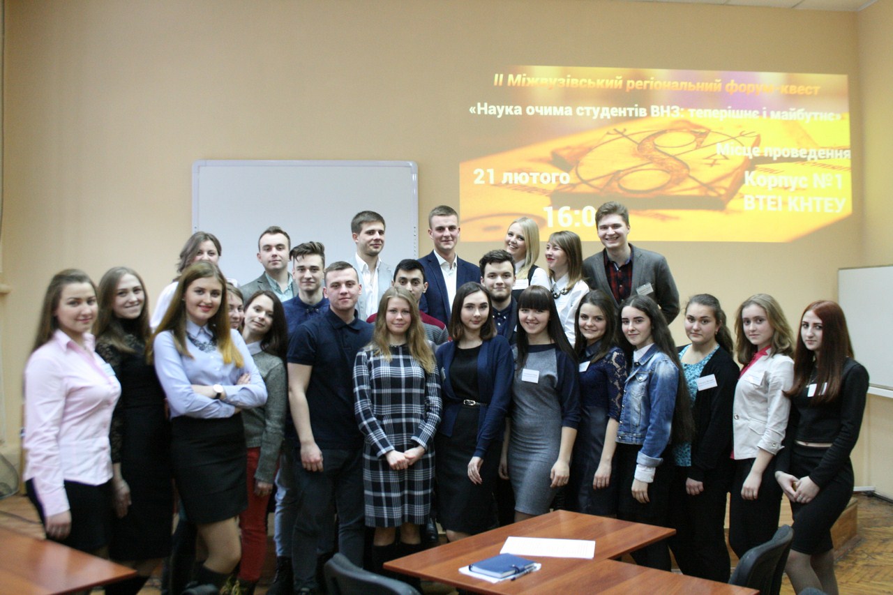 21 лютого 2017 року відбувся ІІ Міжвузівський регіональний форум-квест «Наука очима студентів ВНЗ: теперішнє і майбутнє». Організатори заходу: студентське наукове товариство «ВАТРА» ВТЕІ КНТЕУ, відділ наукової роботи та міжнародної співпраці.