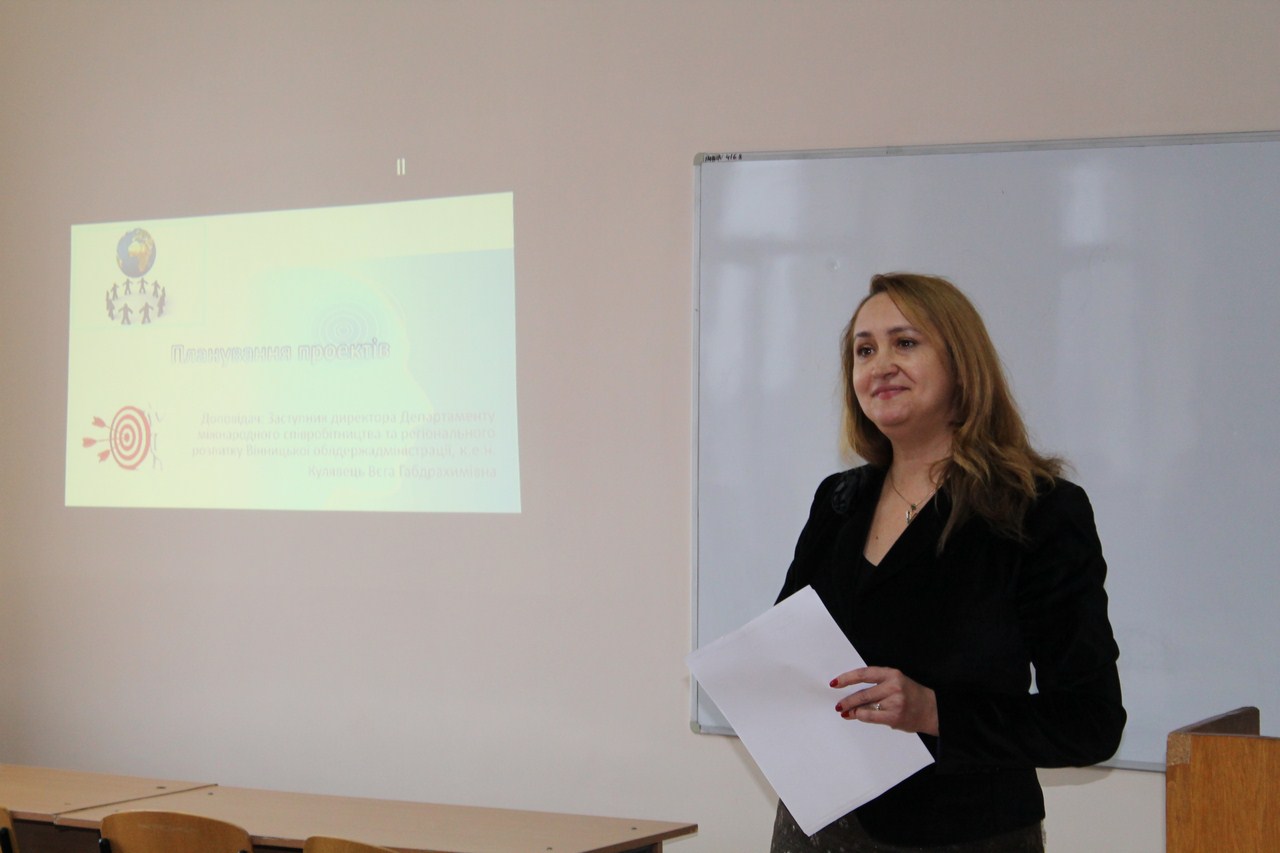 22 листопада 2016 року в рамках святкування тижня факультету економіки, менеджменту та права кафедрою економіки та міжнародних відносин було організовано майстер-клас «Планування проектів: від теорії до практики». Майстер-клас провела Кулявець В.Г. начальник управління торгівлі, послуг та розвитку споживчих ринків Департаменту міжнародного співробітництва та регіонального розвитку Вінницької ОДА. Захід відвідали здобувачі освітнього ступеня «бакалавр», денної форми навчання груп МЕ-31д, МЕ-41д, МЗД-41д, МО-31д та ЕП-11д. В процесі проведення майстер-класу здобувачі дізналися про сутність грантової діяльності у Вінницькій області та ознайомились з особливостями процесу написання проекту та його реалізації.