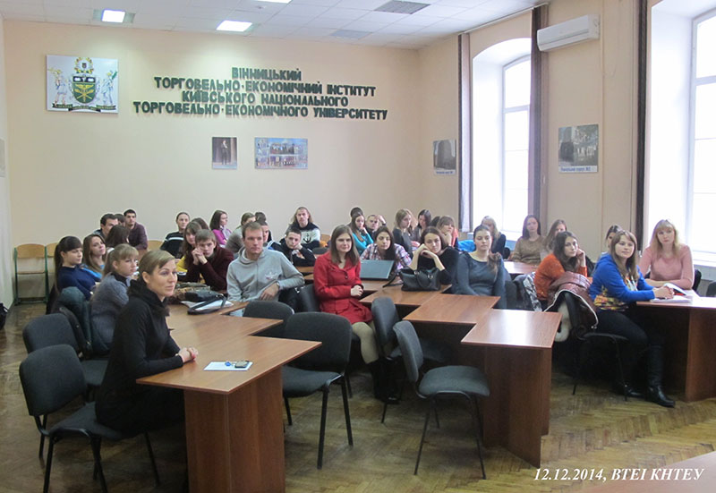 12 грудня 2014 року в аудиторії №17 першого корпусу ВТЕІ КНТЕУ в рамках «Всеукраїнського тижня права» для студентів інституту була проведена зустріч з адвокатом Вінницького обласного об’єднання колегії адвокатів Красномовець Наталією Петрівною. Тема доповіді: «Надання правової допомоги громадянам при захисті прав в суді та правоохоронних органах».