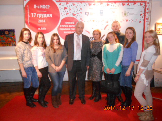 КОМАНДА КЛУБУ МАРКЕТОЛОГІВ ВТЕІ КНТЕУ у складі 7 чоловік на чолі з науковим керівником к.е.н., доц. Ковінько О.М. 17 грудня 2014 р. прийняла участь у Восьмому Національному Фестивалі Соціальної Реклами, який проходив у Освітньо-культурному центрі «Майстер-клас» (Київ, вул. Лаврська, 16) за організації Спілки рекламістів України.