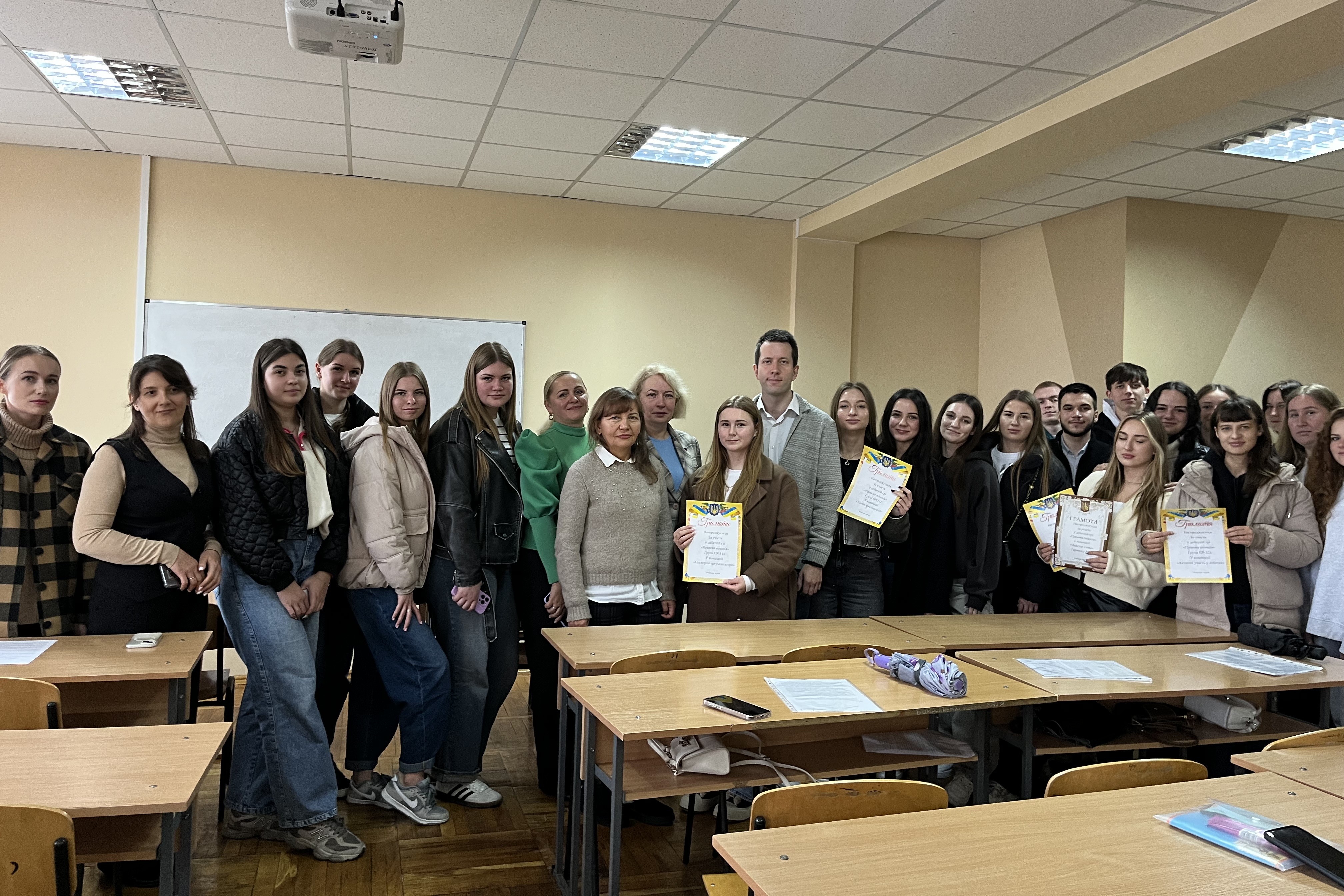 7 жовтня 2025 року у рамках проведення днів факультету економіки, менеджменту та права кафедрою права було проведено дебатну гру «Правова позиція», присвячену Дню юриста. Зі вступним словом до учасників звернулася завідувач кафедри права, доктор юридичних наук Тетяна Сухоребра.