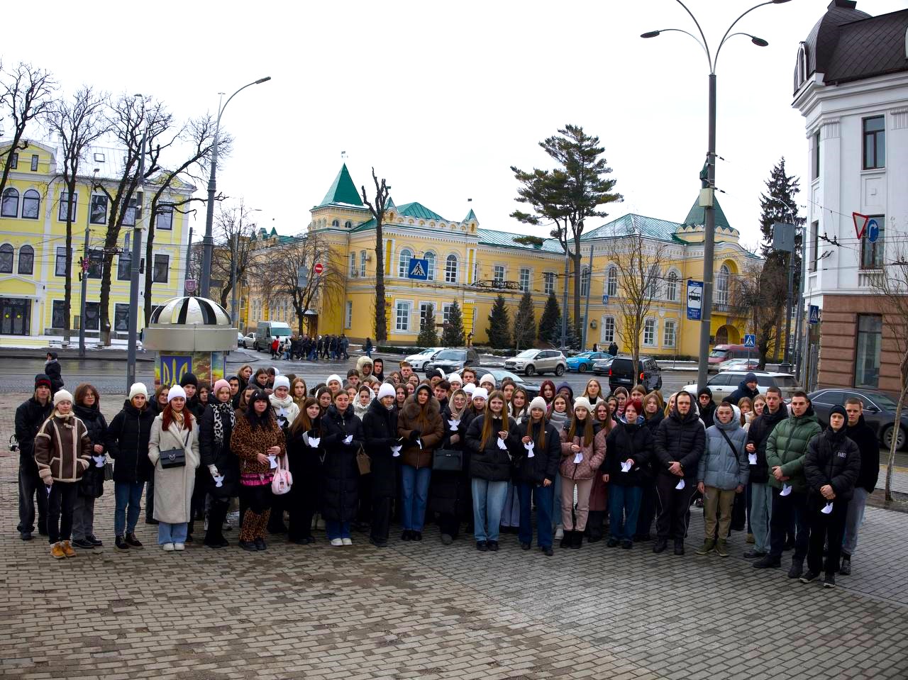 20 лютого 2025 р. о 12:00 на площі Героїв Небесної Сотні біля скульптурної композиції «Дерево Свободи» відбулась тиха акція «Ангели памʼяті», до якої долучились студенти Вінницького торговельно-економічного інституту ДТЕУ.