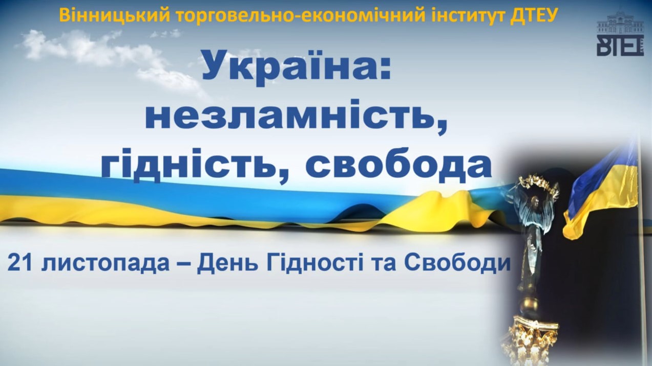 21 листопада в Україні відзначається День Гідності та Свободи. Цей день установлено з метою збереження та донесення до сучасного та майбутнього поколінь інформації про доленосні події в Україні початку ХХІ століття, утвердження ідеалів свободи й демократії, а також віддання шани патріотизму та мужності громадян, які восени 2004-го й у листопаді 2013-го – лютому 2014 року стали на захист демократичних цінностей, прав та свобод людини і громадянина, національних інтересів нашої держави та її європейського вибору.