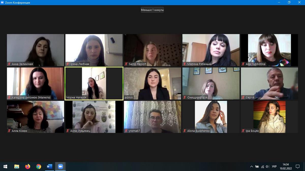 10 лютого 2022 року відбулося засідання робочої групи з розроблення освітніх програм «Туризм» ОС «бакалавр» та «Міжнародний туристичний бізнес» ОС «магістр», за участі науково-педагогічних працівників кафедри туризму та готельно-ресторанної справи, директорів туристичних підприємств, випускників освітніх програм та здобувачів вищої освіти, які наразі навчаються за ними.