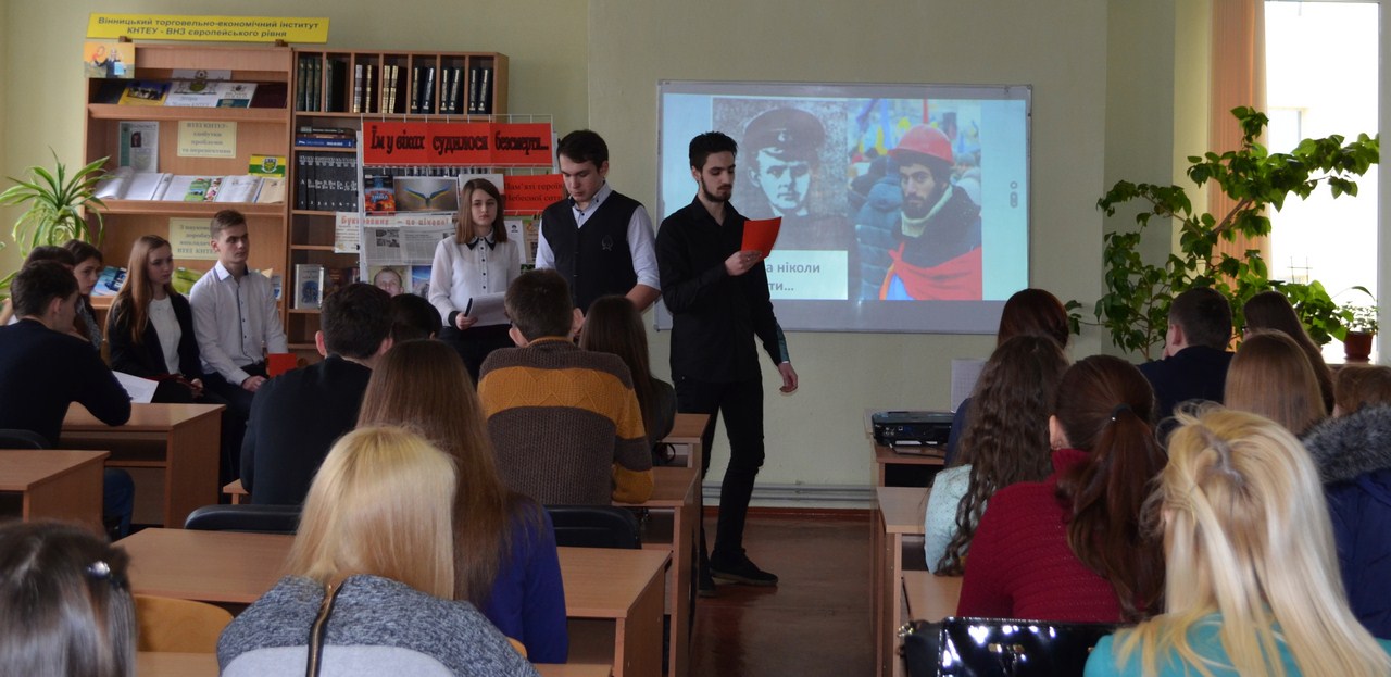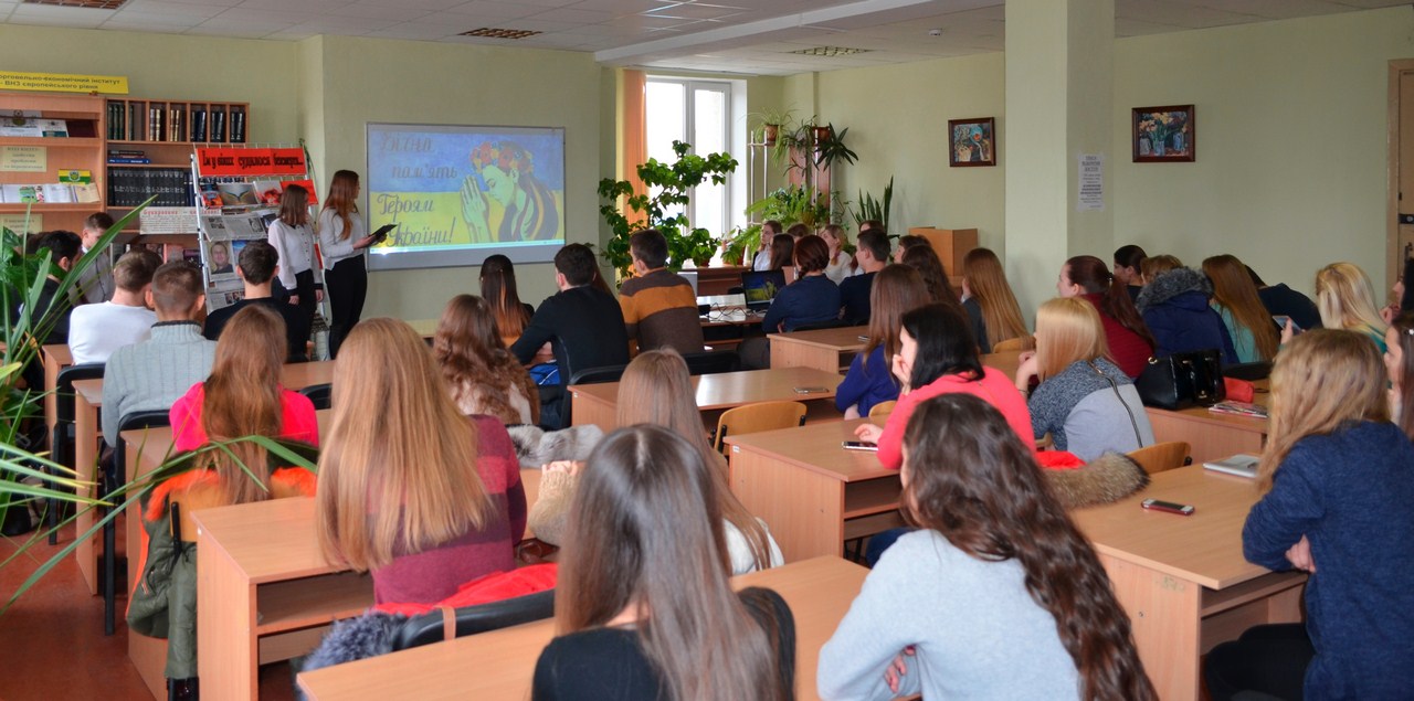 Хвилиною мовчання було вшановано пам'ять героїв Небесної Сотні. Через відеопрезентації, слайди та буктрейлер, підготовлені працівниками бібліотеки, студенти мали можливість побачити все те, з чого починались події, які сколихнули весь світ.