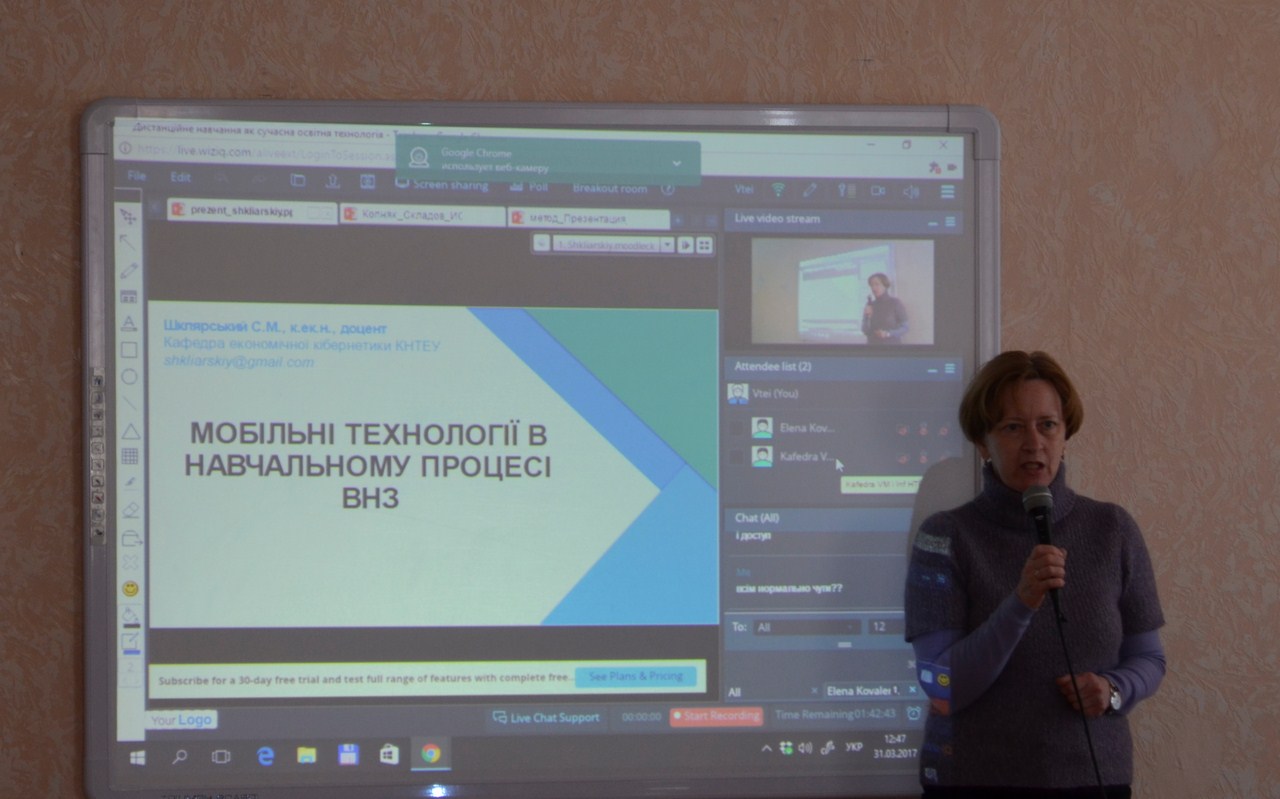 31 березня 2017 року на кафедрою економічної кібернетики та інформаційних систем було проведено міжвузівський вебінар «Дистанційне навчання як сучасна освітня технологія» в режимі on-line на платформі WizIQ. У вебінарі прийняли участь ряд навчальний закладів, а саме: Київський національний торговельно-економічний університет, Харківський торговельно-економічний інститут КНТЕУ, Вінницький національний технічний університет, Вінницький державний педагогічний університет ім. М. Коцюбинського, Івано-Франківський національний технічний університет нафти і газу, Вінницький національний аграрний університет, Вінницький навчально-науковий інститут економіки Тернопільського національного економічного університету. До уваги присутніх було запропоновано яскраві презентації учасників вебінару та on-line обговорення доповідей.