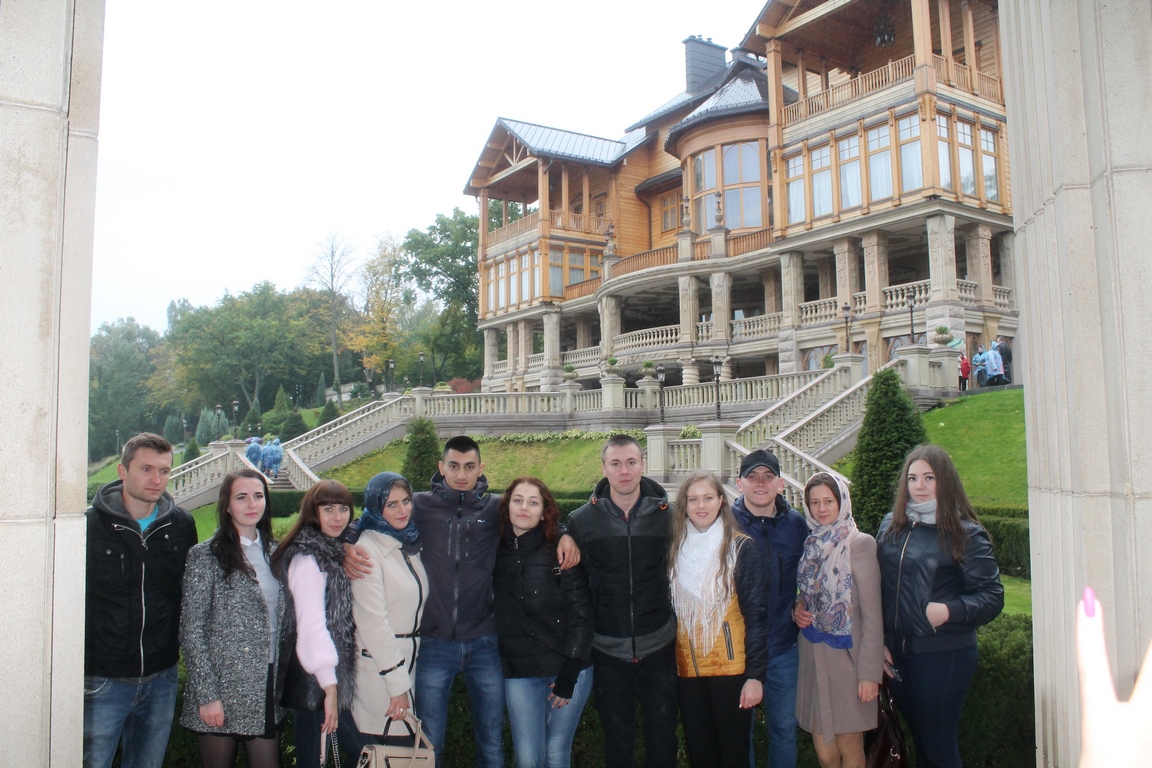Екскурсія почалася із відвідання колишньої приватної резиденції Президента – Межигір`я. Студенти отримали враження від ландшафтного дизайну парка, президентського дому «Хонка», джерела «Дзвінкова криниця», адміністративного комплексу, зоопарку.