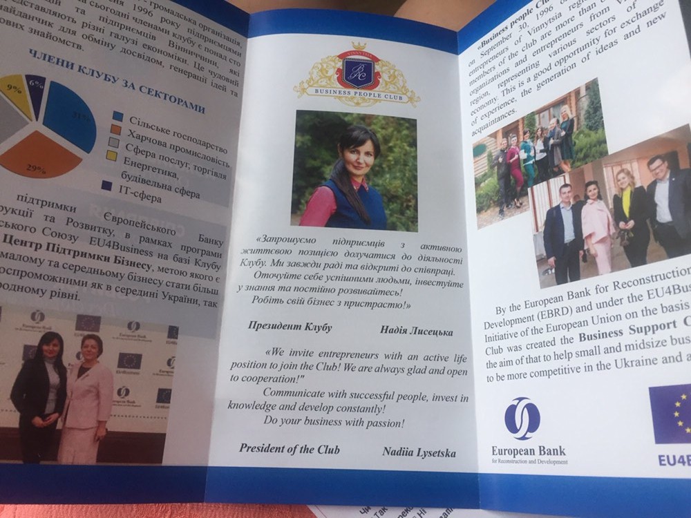 Захід організований Центром підтримки бізнесу м.Вінниці, основаним на базі Вінницького Клубу ділових людей, за підтримки Європейського банку реконструкції та розвитку (ЄБРР) в рамках ініціативи Європейського Союзу EU4Business.