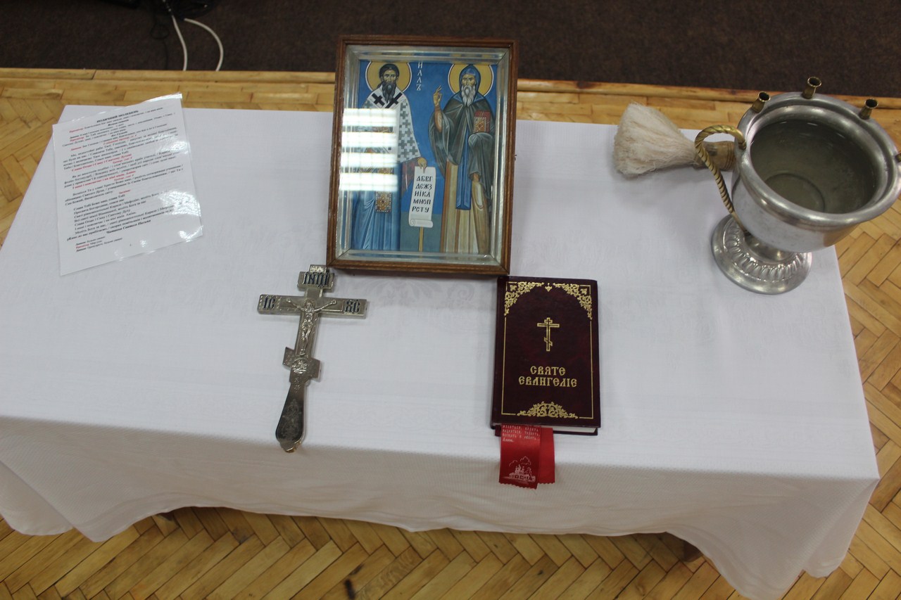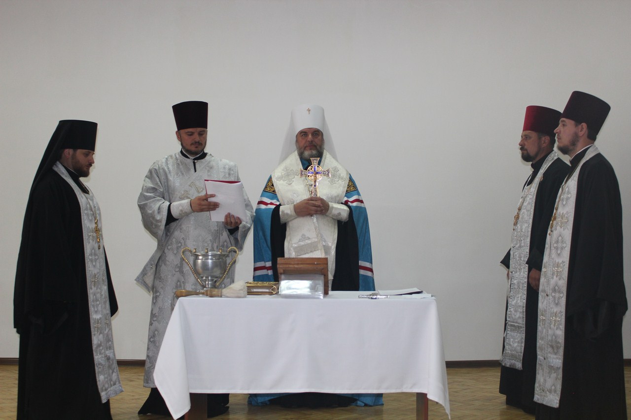 Разом з митрополитом Симеоном богослужіння звершували представники духовенства Вінничини. По завершенню молебні усіх присутніх окропив святою водою священик, капелан-волонтер Вінницької єпархії протоієрей Анатолій Кузнєцов, який опікується Домовим храмом святих рівноапостольних Кирила та Мефодія у ВТЕІ КНТЕУ.