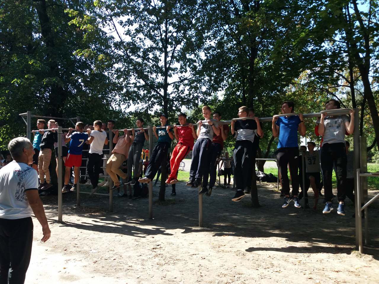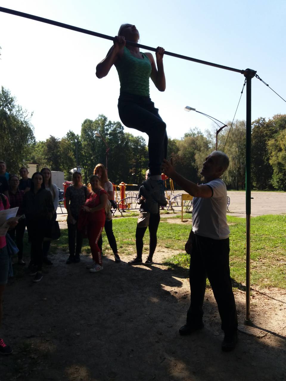 У флеш-мобі з підтягування залюбки прийняли участь не тільки юнаки, але й відважні дівчата – студентки ВТЕІ КНТЕУ.