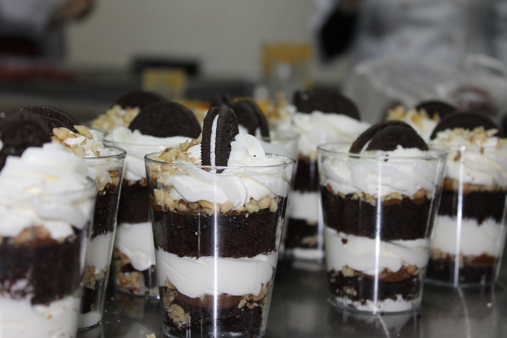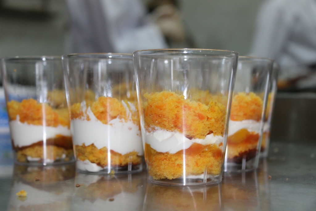Бойко Галина продемонструвала технологію приготування сучасних десертів кенді-бару, а саме тістечок «Картопля» з шоколадною глазур’ю та десертів у стаканчиках трайфлів з використанням бісквіту «Червоний оксамит», гарбузового та шоколадного бісквіту на кип’ятку. Кожен учасник мав змогу виготовити свій трайфл та «Картоплю», ознайомитися з сучасними тенденціями у кондитерському мистецтві, особливостями технології різних кремів, конфітюру, оздоблювальних виробів та ін. Три години роботи пройшли у жвавій виробничій атмосфері у колі шанувальників кондитерської справи під керівництвом компетентного практика. Це дало можливість здобути не тільки нові корисні знання, але й практичні навички, без яких сьогодні молодим фахівцям-харчовикам неможливо досягти успіху та бути конкурентоспроможним на ринку праці.