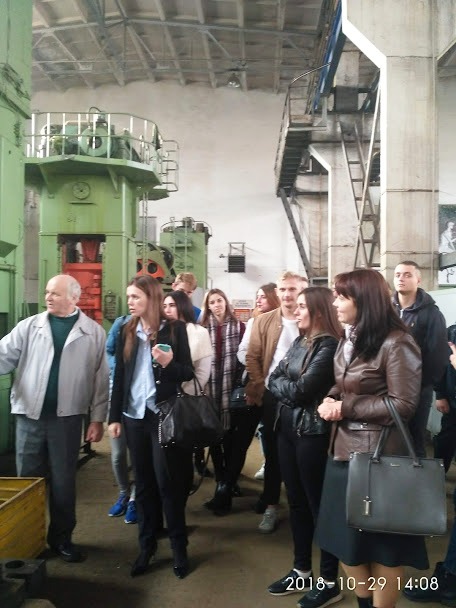Цікаву та змістовну екскурсію для студентів та викладачів провів головний технолог Шусь Василь Васильович. Досвідчений спеціаліст з понад 30-річним стажем поділився з молоддю інформацією про підприємство, розповів про його структуру (основні цехи та їх спеціалізацію), зокрема повідомив, що державне підприємство входить до Державного концерну «Укроборонпром». Завод є провідним підприємством з виробництва технічних засобів транспортування, заправки, перекачування і зберігання нафтопродуктів. На підприємстві є унікальне обладнання, потужна документально-технічна база, яка дозволяє виконувати індивідуальні замовлення на виготовлення різних виробів за ескізами або кресленням замовника з чорних та нержавіючих сталей, а також з кольорових металів.