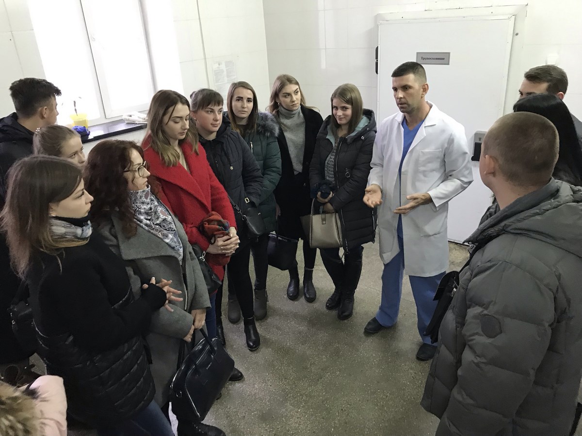 Під час оглядової екскурсії завідувач відділенням чергових судово-медичних експертів Ігор Михайлович Плахотнюк розповів студентам про призначення установи, які експертизи проводяться, пояснив, чим відрізняється судово-медичний експерт від патологоанатома, роз’яснив процесуальний статус судово-медичного експерта.