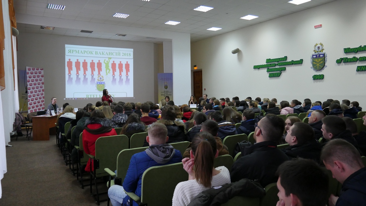 22 листопада у Вінницькому торговельно-економічному інституті КНТЕУ відбувся «Ярмарок вакансій 2018 року» - традиційний захід, який вже багато років викликає великий інтерес як у підприємств-роботодавців, так і у здобувачів вищої освіти.