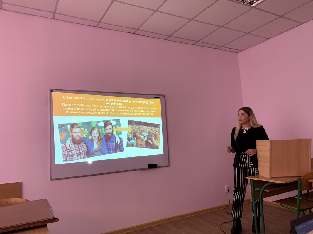 21 лютого 2019 року під керівництвом Мацери Ольги Анатоліївни та Паславської Інги Болеславівни, викладачами кафедри іноземної філології та перекладу, відбулося відкрите засідання студентського наукового гуртка «American and English Studies» на тему «Cultures and national stereotypes». Здобувачі вищої освіти з цікавістю занурились у дослідження запропонованої теми. У засіданні гуртка взяли участь студенти освітнього ступеня «Бакалавр» різних спеціальностей у кількості 15 чоловік та викладачі кафедри іноземної філології та перекладу. Презентовані доповіді викликали жваву дискусію стосовно культурних відмінностей та національно-специфічних рис різних країн. З-поміж виголошених доповідей були відзначенні виступи Макогоненка О., МБ-22, Пшеничнюк Ю., МЕВ-12, Пенькової Т., ПР-13 та Мельник А., КПР-21.