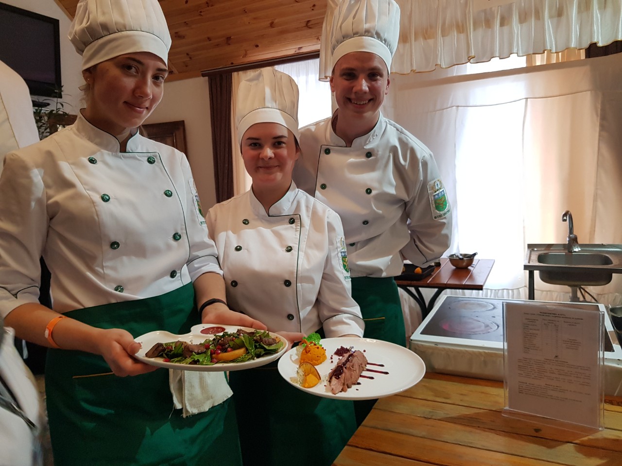 Команда ВТЕІ КНТЕУ складалася зі студентів групи ХТ-31 Десятник Анни та ХТІ-41 Недонос Юліани, Щербій Тетяни, Сергатого Юрія під керівництвом старшого викладача кафедри туризму та готельно-ресторанної справи Іваніщевої О.А. Ми змагалися у командній номінації «Страва в казані» (золота медаль), індивідуальній номінації «Страва з риби» (срібна медаль) та номінації «Краща команда кухарів» (срібні медалі). На розгляд журі представлено страви «Бограч по-вінницьки», «Філе лосося на подушці з гарбузово-манговим пюре, вершково-базиліковим соусом та гарбузовою пудрою», «Теплий салат з курячою печінкою та хурмою», «Качине філе з морквяно-апельсиновим пюре та малиновим соусом».