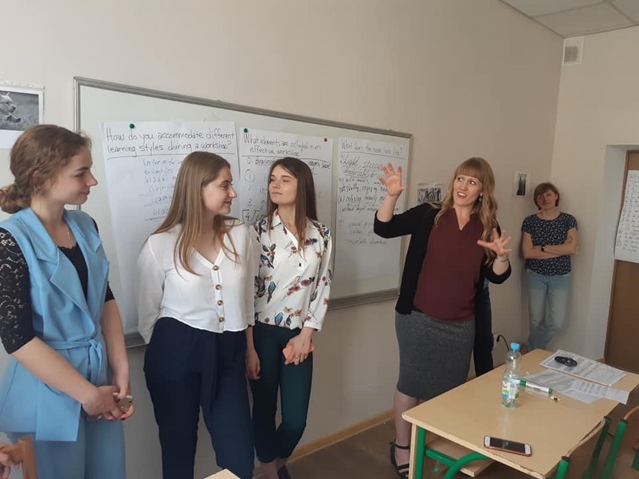 Венді Фінлейсон та її помічниця Маргарита Кожухевич, магістрантка Сумського державного педагогічного університету ім. А.С. Макаренка, провели для учасників столу два воркшопи: «Designing Active and Engaging Workshops» та «Engaging Students through Active Learning Strategies».