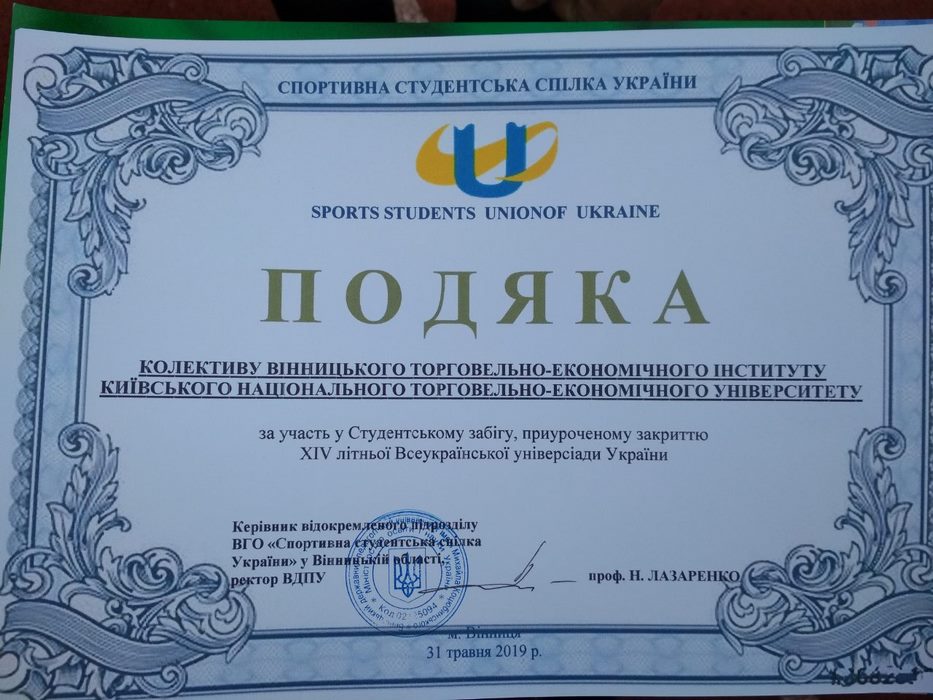 Колективу Вінницького торговельно-економічного інституту КНТЕУ оголошено подяку за участь у заході.