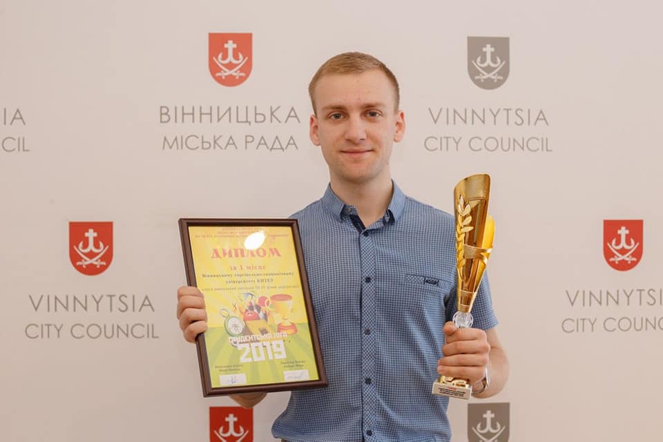 Вже другий рік поспіль студенти ВТЕІ КНТЕУ перемагають у конкурсі серед закладів вищої освіти ІІІ-ІV рівнів акредитації м. Вінниця. Цьогорічна ліга тривала з 18 квітня по 2 червня і складалася із 6 конкурсних змагань, а саме: турнів з міні-футболу, турнір з боулінгу, турнір з комп’ютерних ігор, інтелектуальна гра Що?Де?Коли?, турнір з пейнтболу та військово-патріотичний табір. За сумарними балами студенти нашого інституту вибороли І місце і отримали, окрім кубку і грамоти, кулер для питної води, який буде встановлений в 4 корпусі.
