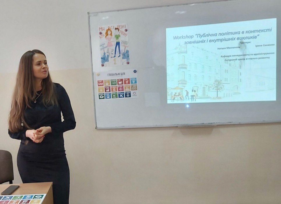 24 лютого 2020 року в рамках проведення VІІІ Фестивалю студентської науки кафедрою менеджменту та адміністрування було проведено Workshop на тему: «Публічна політика в контексті зовнішніх і внутрішніх загроз. Імплементація гендерної рівності в публічне управління». До заходу були залучені усі бажаючі студенти спеціальності «Публічне управління та адміністрування» першого, третього та четвертого курсів, а також науково-педагогічні працівники кафедри менеджменту та адміністрування.