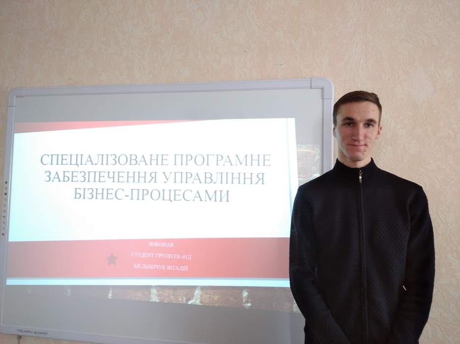 Тема засідання дискусійного клубу «Оптимізація бізнес-процесів підприємств та організацій за допомогою сучасних інформаційних систем та технологій». З доповідями виступили: фахівець з комп’ютерних інформаційних систем (університет м. Фенікс, штат Арізона, США) Джонатан Кларк та здобувачі гр.ЕК-41д: Косніцький С.А., Кулініч Р.С., Мельничук В.О., Цибульський В.М., Філіппов Ю.Ю. У результаті обговорення виступів здобувачів було прийнято рішення, що рівень проведеного дослідження у представлених доповідях відповідає всім необхідним вимогам та матеріал може бути рекомендований для друку у студентських науково-практичних конференціях.