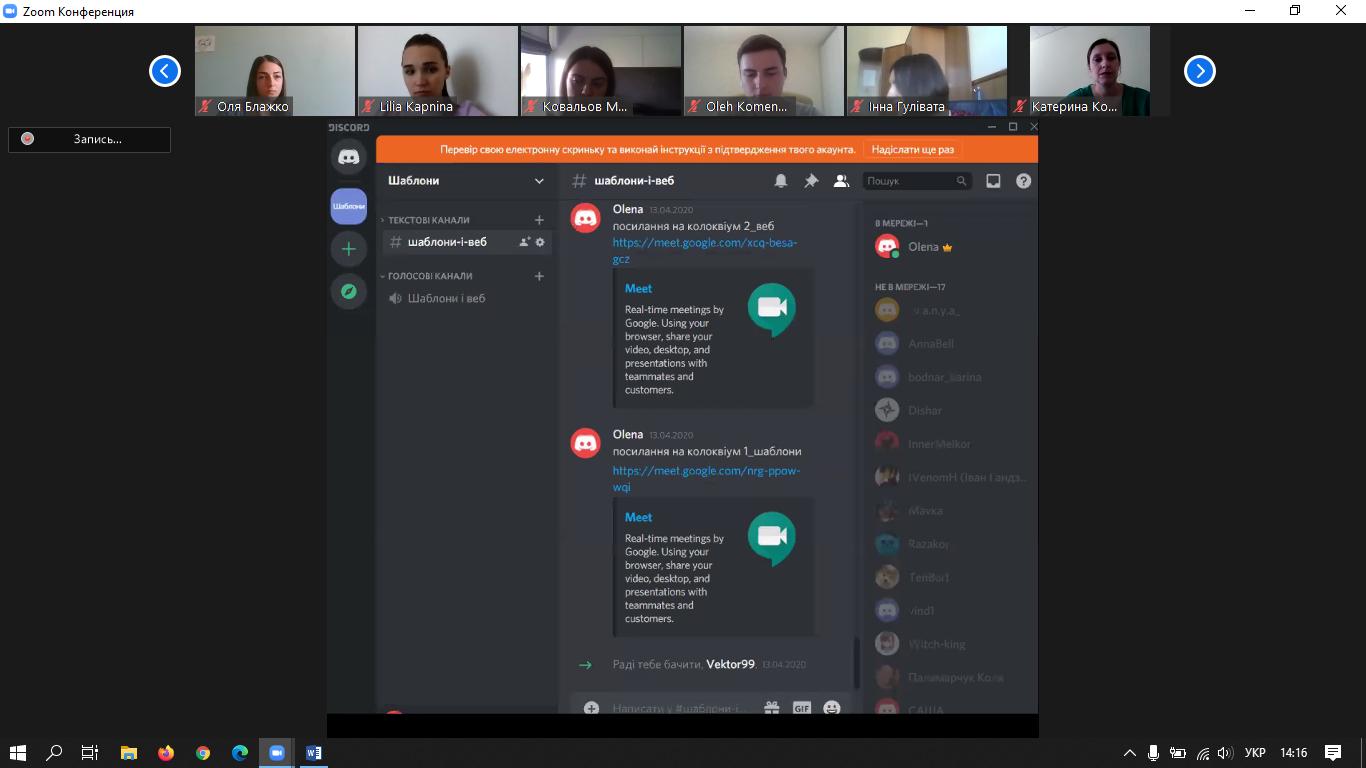 26 червня 2020 року на базі кафедри економічної кібернетики та інформаційних систем відбувся науково-практичний семінар на тему «Використання сервісів Google та хмарних технологій в навчальному процесі», який проходив в режимі on-line на платформі Zoom. В роботі семінару взяли участь викладачі Вінницького національного технічного університету, Вінницького торговельно-економічного інституту КНТЕУ та здобувачі освітнього ступеня «магістр» спеціальності «Економіка» спеціалізації «Економічна кібернетика».