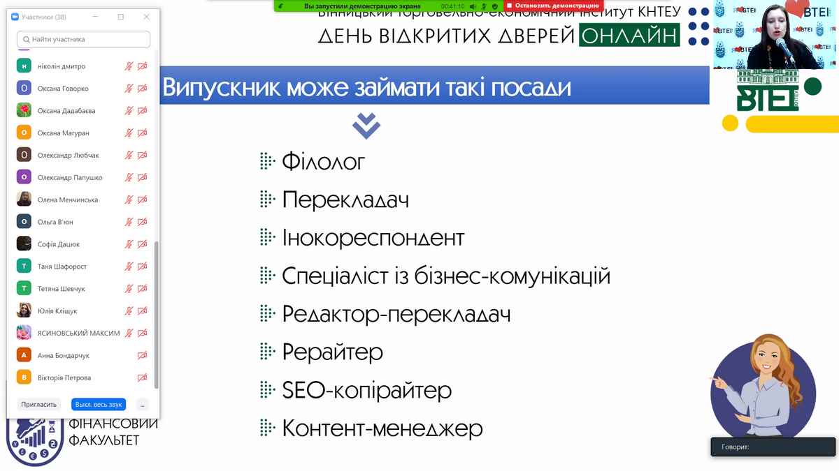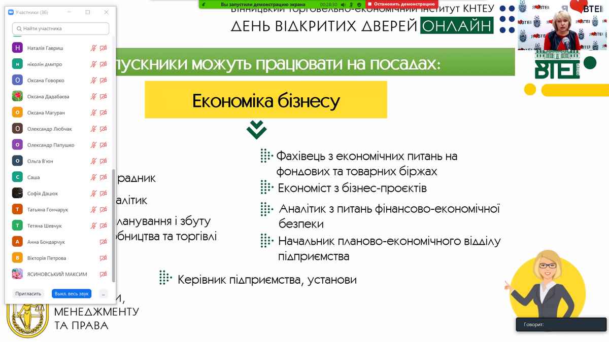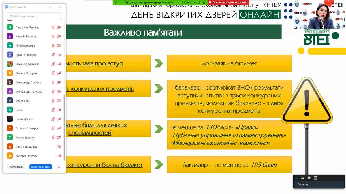 Сьогодні у Вінницькому торговельно-економічному інституті КНТЕУ відбувся День відкритих дверей в онлайн-форматі на платформі Zoom.