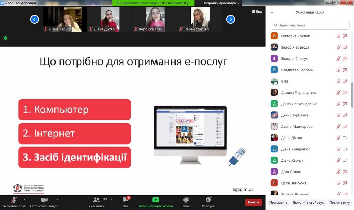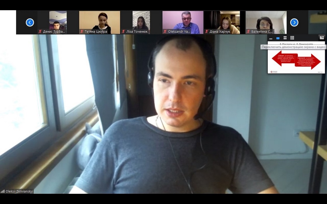 18 листопада 2020 року кафедрою менеджменту та адміністрування спільно з кафедрою економічної кібернетики та інформаційних систем в рамках діяльності наукової студії «Цифрова трансформація в громадах» (керівник – доцент Ніколіна І.І.) для здобувачів спеціальностей «Публічне управління та адміністрування» та «Інформаційні системи та технології» було організовано онлайн-лекцію «Архітектура е-сервісів в Україні. Впровадження електронних державних послуг». Спікером заходу було запрошено координатора компоненту «Е-послуги» Програми «Електронне урядування задля підзвітності влади та участі громади» (Програма EGAP) Олексія Зелів’янського, а модератором виступив Іван Копиченко, регіональний координатор програми EGAP в Одеській області.