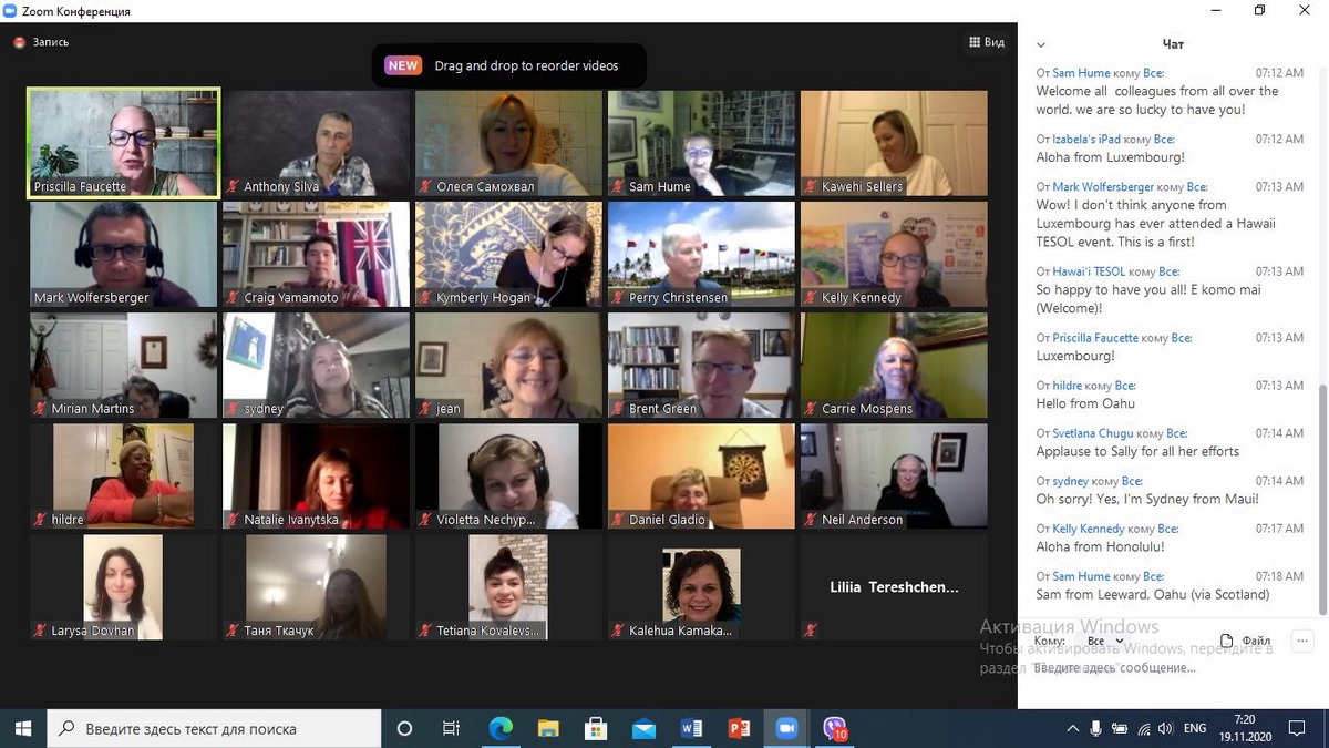 19 листопада викладачі кафедри іноземної філології та перекладу взяли участь в інтерактивному міжнародному воркшопі, організованому Гавайською філією TESOL. Як створити комфортне освітнє асинхронне та синхронне освітнє середовище, як не втратити якість навчання і мотивувати студентів до систематичної співпраці – ці питання стали ключовими для панельної дискусії 60 викладачів із різних країн світу. Колеги ділилися кращими практиками «віртуальної» роботи зі студентами, обмінювалися «лайфхаками» занурення в предмет в умовах віддаленого навчання.