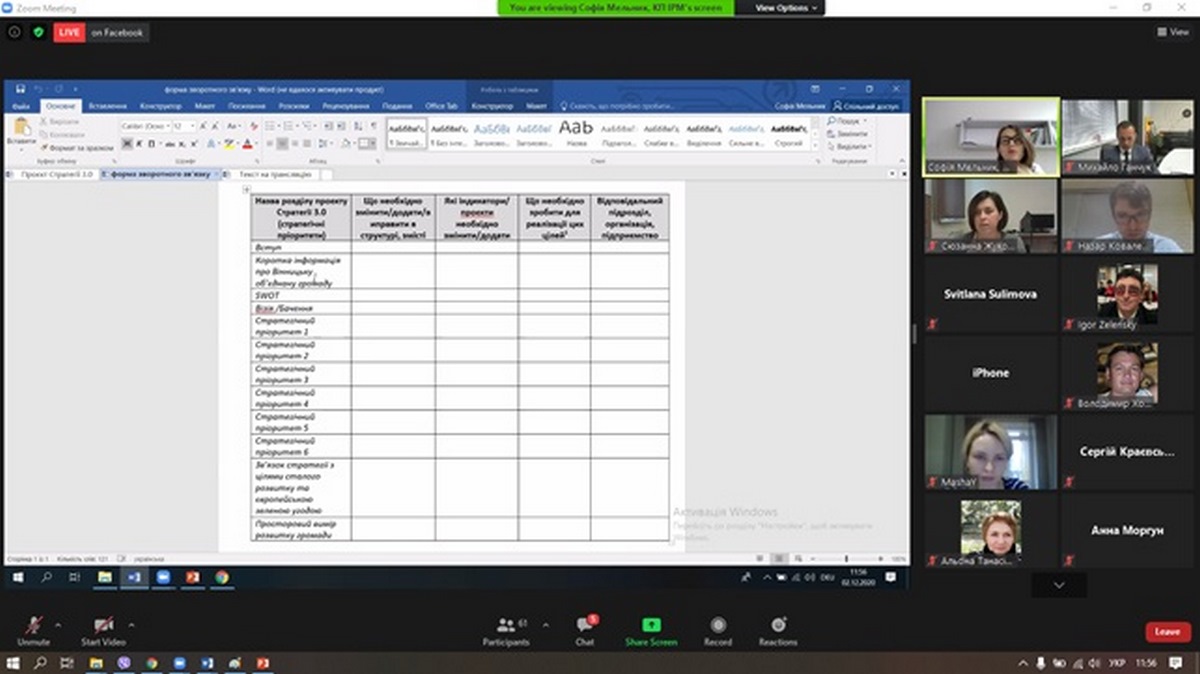2 грудня 2020 року слухачі Бізнес-школи ВТЕІ КНТЕУ брали участь в онлайн презентації проєкту "Стратегії 3.0 Вінницької міської ОТГ", яку було організовано відділом інтегрованого розвитку КП "Інститут розвитку міст".