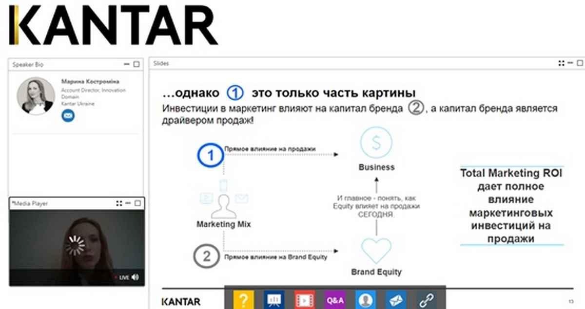 Учасники вебінару мали можливість ознайомитися з практичними аспектами оцінювання впливу відомості торгової марки на обсяги продажу продукції, механізмом впливу бренду на прийняття рішення про купівлю товару, особливостями врахування результатів даного дослідження при формуванні медіаплану на наступні періоди, а також підвищити свій професійний рівень!