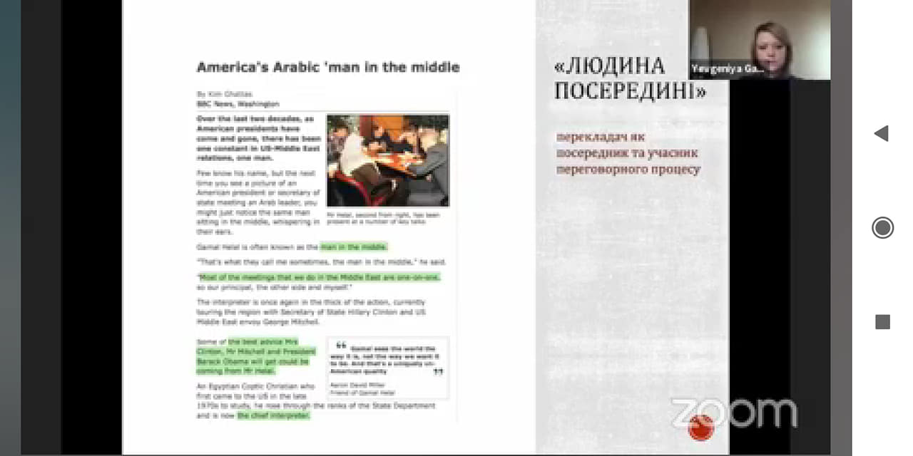 Викладачі та здобувачі вищої освіти ОП «Германські мови та літератури (переклад включно), перша - англійська» спеціальності 035 Філологія брали участь у онлайн форумі "Дипломатичний переклад"