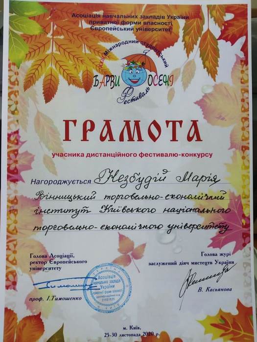 ВТЕІ КНТЕУ брав участь у XХІІІ Міжнародному фестиваль-конкурсі студентської художньої творчості «БАРВИ ОСЕНІ – 2020»