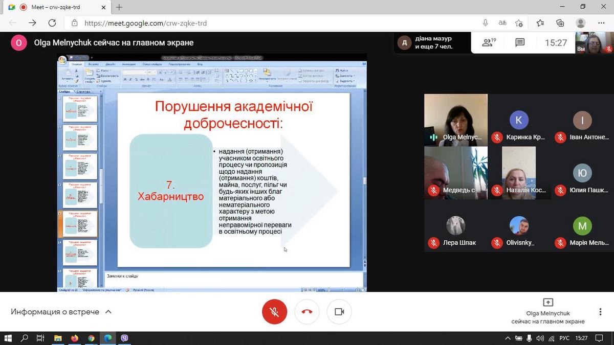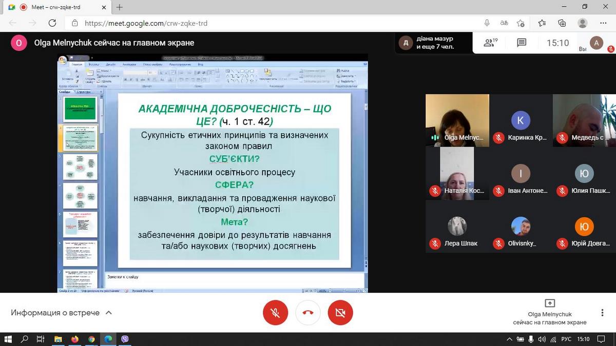 Також учасники вебінару говорили про те, як дотримання доброчесності впливає на якість освіти, про важливість дотримання академічної доброчесності як науково-педагогічним персоналом, так і здобувачами вищої освіти, про необхідність формування культури дотримання академічної доброчесності у Вінницькому торговельно-економічному інституті КНТЕУ.