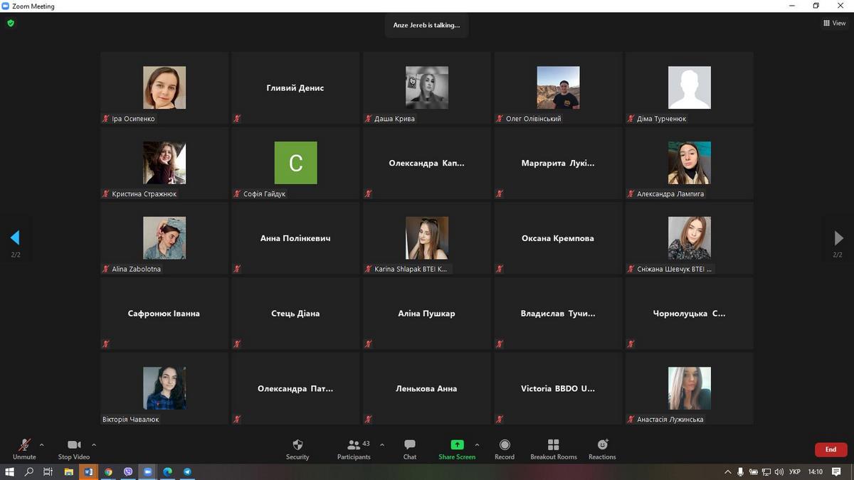 20 квітня 2021 року викладачі та здобувачі вищої освіти брали участь у засіданні Бізнес-школи ВТЕІ КНТЕУ з Anze Jereb, Regional Executive Creative Director Ukraine & Central Asia у BBDO Worldwide та Executive Creative Director у BBDO Ukraine.