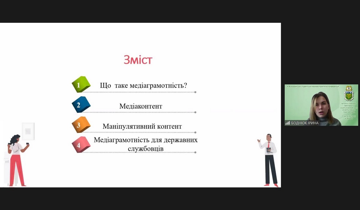 Боднюк Ірина, група ПУА-11д, тема «Медіаграмотність державних службовців в контексті інформаційних війн». Науковий керівник – ст. викладач Копняк Катерина.